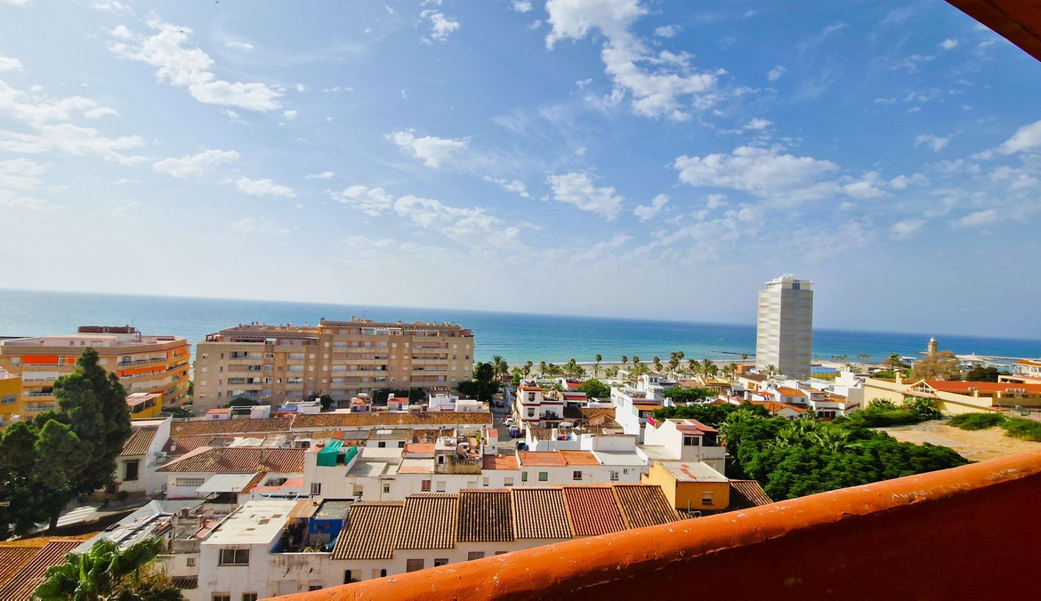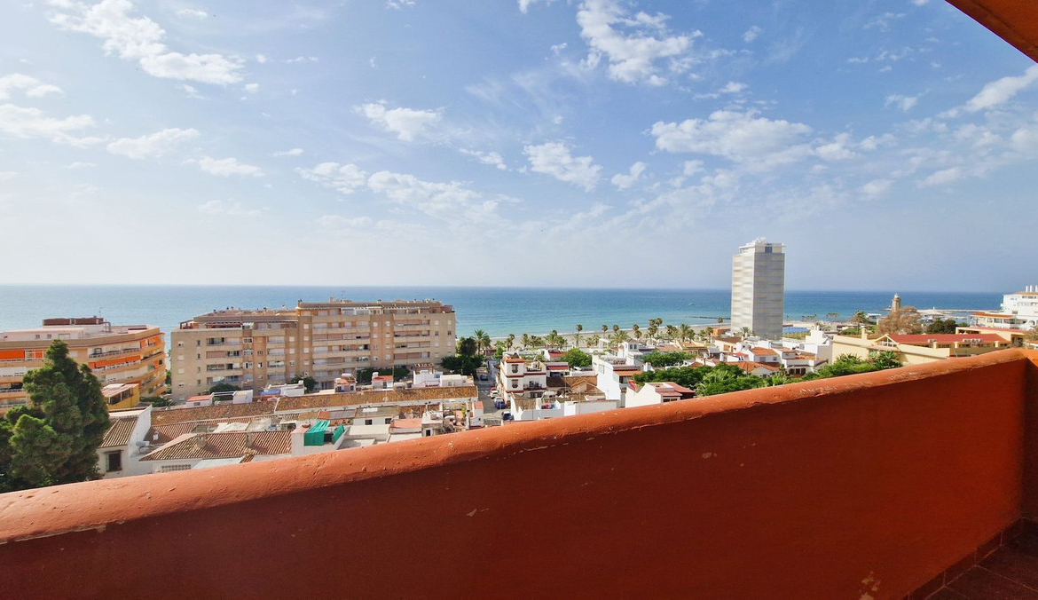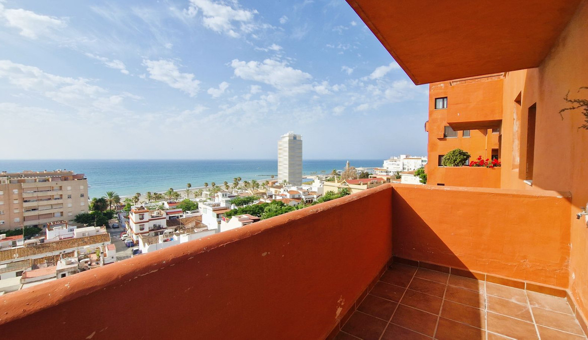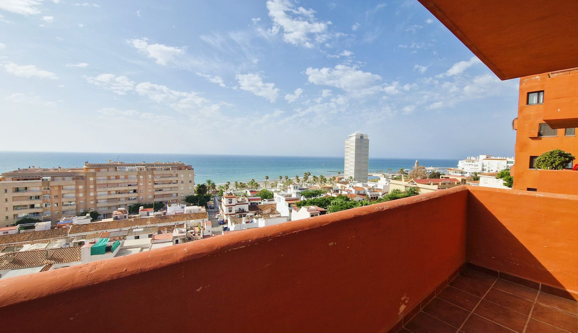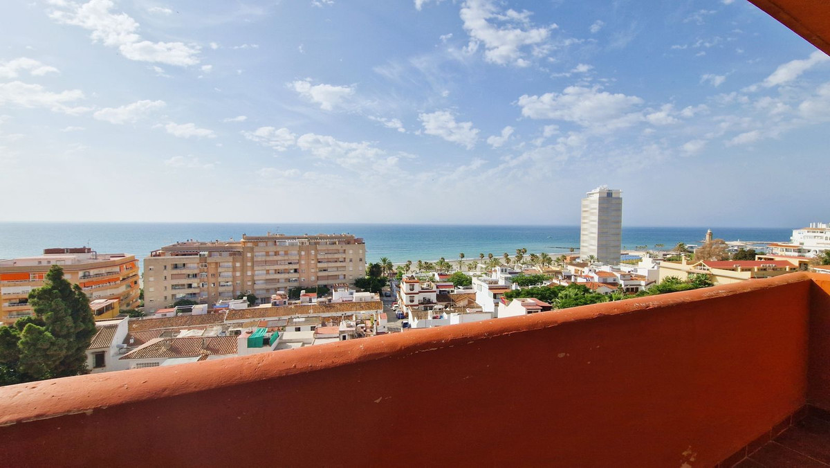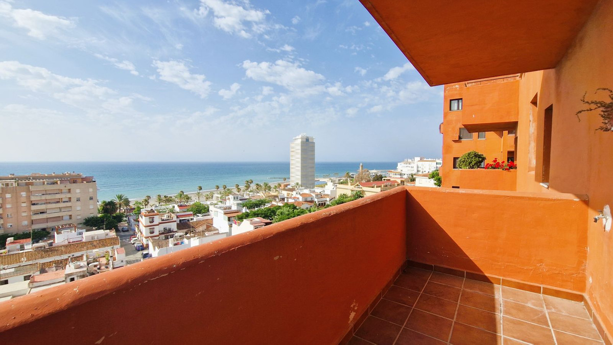 The open-plan kitchen is fully equipped and offers ample storage space, leading into the bright living-dining area with direct sea views.